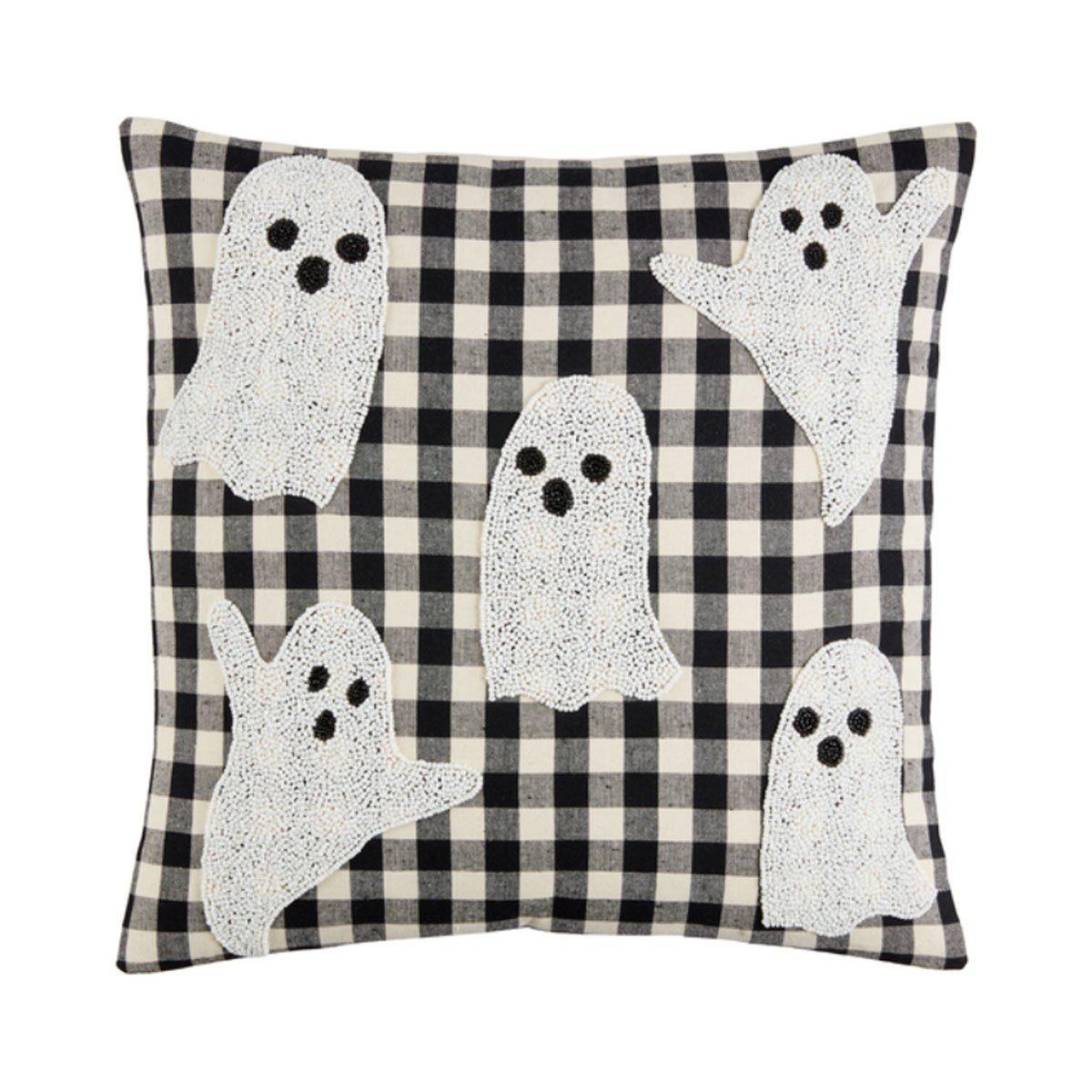 The Ghost Beaded Pillow in Buffalo check design is a stylish and unique addition to any home decor. This 18" x 18" pillow is made of high-quality cotton and features a beaded applique for added texture and visual interest. The canvas backing and zipper closure ensure durability and easy maintenance. This pillow is the perfect way to add a touch of elegance and charm to any room in your home. Whether used as a decorative accent on a sofa or as a comfortable support on a bed, this Ghost Beaded Pillow is sure to make a statement.