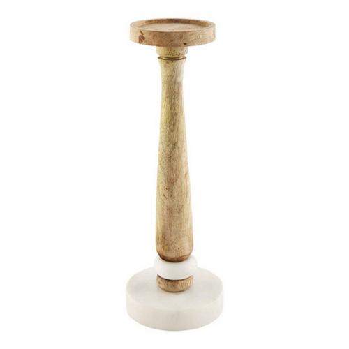 Fire it up with our Skinny Marble Candleholder. The candlestick features white marble and mango wood sections. This listing is for the candleholder, and the candle is not included.