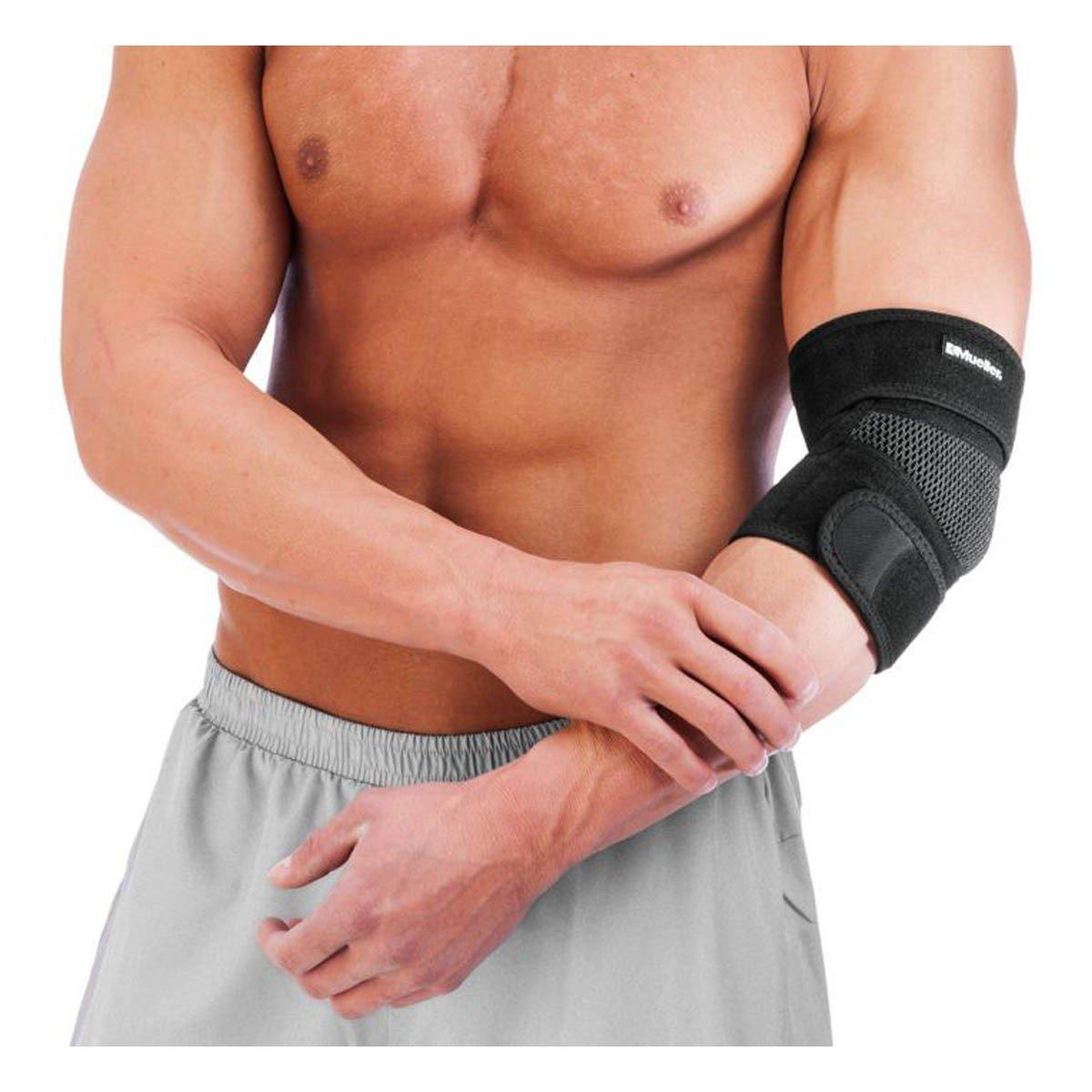 The Mueller Adjustable Elbow Support features HydraMesh for increased breath-ability and comfort. Convenient slip-on design for easy one-handed adjustments. Soft neoprene blend retains body heat to increase circulation to help promote healing and elbow flexibility. Antimicrobial treatment reduces odor causing bacteria.* One size fits all. Fits left or right.