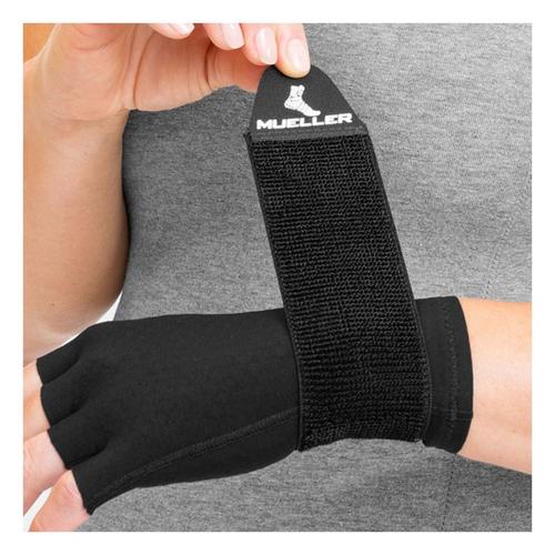 The Mueller Sports Medicine compression glove provides compression and support for weak or aching hands and wrists. Helps in the treatment of painful conditions such as arthritis. Helps reduce pain, stiffness, and swelling in the hand. Features thermo reactive technology that absorbs natural heat and reflects Far Infrared back to the skin, helping the body recover.
