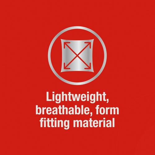 The Mueller-exclusive HydraCinn® fabric is the moisture-wicking catalyst for maintaining superior support with heat management. The base sleeve is made of antimicrobial fabric that is uniquely breathable, extremely soft to the touch with flatlock seams and features a conforming hourglass design. Inner grip strips complete the anti-sweat/non-slip design to help prevent brace migration and preserve high-performance support.