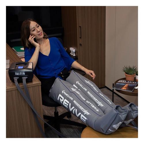 The Mueller REVIVE™ M4 Console is enhanced with Bluetooth technology to track personalized treatments on your mobile device. REVIVE™ speeds up the recovery process by accelerating the body’s natural circulation with precise levels of pressure. Reduce pain and improve performance before, during, and after all levels of physical activity. Gear packs consist of console and leg sleeves only. Backed by a 90-day risk-free trial. Do more than recover, REVIVE™.