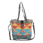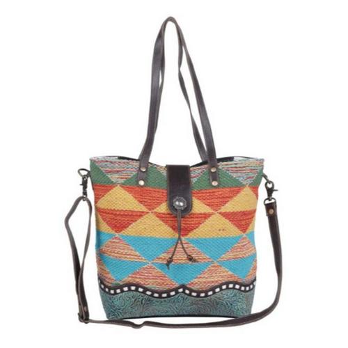 DescriptionThis multicoloured, geometric patterned canvas tote bag will look great with bohemian, ehtnic and casual outfits.
