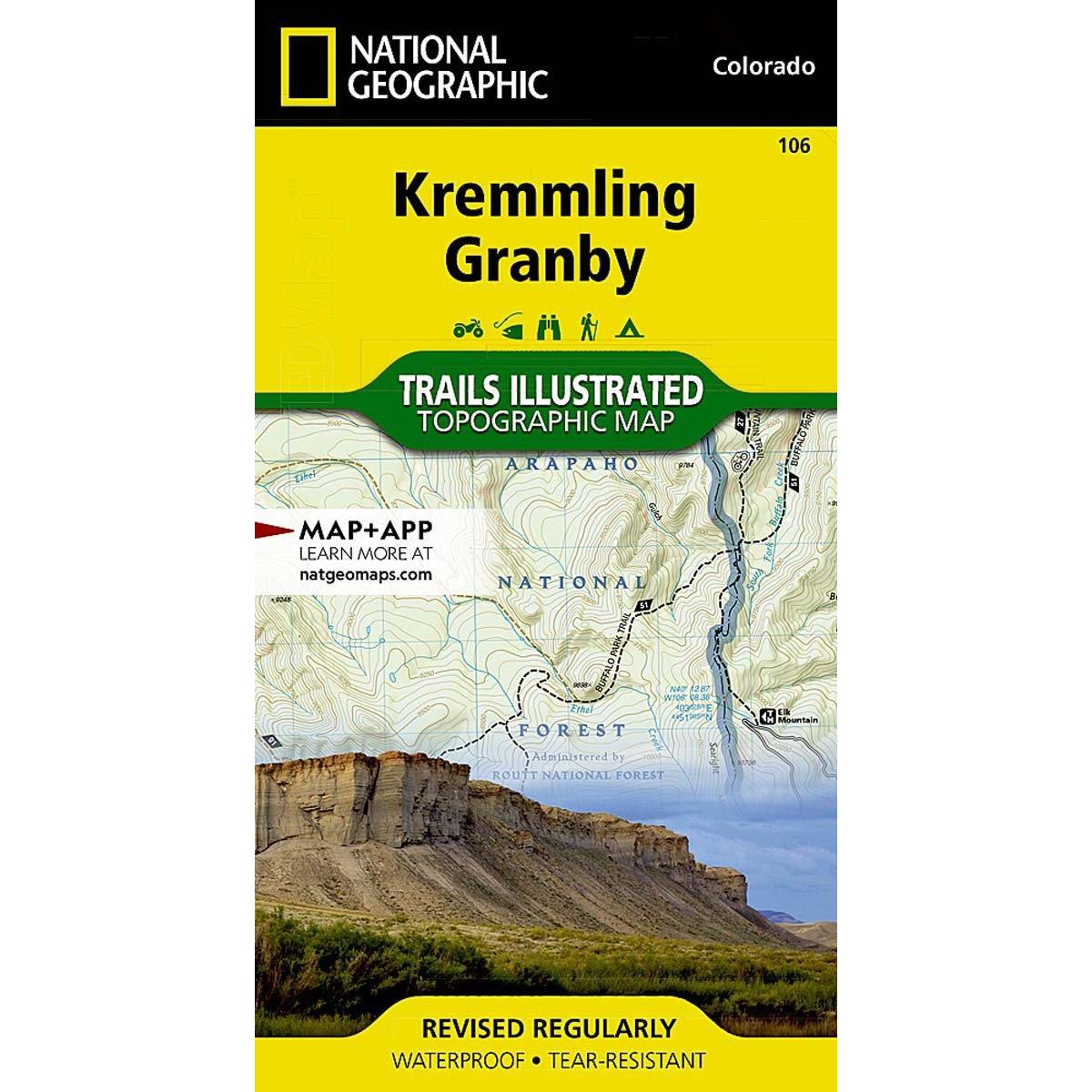 National Geographic's Trails Illustrated map of Kremmling and Granby delivers unmatched detail and valuable information to assist you in your exploration of this popular recreational area. Expertly researched and created in partnership with local land management agencies, this map features key points of interest including Arapaho National Recreation Area; Wolford Mountain, Hinman, Willow Creek, and Williams Fork reservoirs; Cottonwood and Gunsight passes; Hot Sulphur Springs, Junction Butte, and Kemp-Breeze state wildlife areas; portions of the Colorado and Blue rivers; and the towns of Kremmling, Granby, Parshall, and Hot Sulphur Springs. Additional information on the Wolford Mountain Area which has an extensive system of routes for travel by foot, horse, mountain bike, motorcycle, ATV, and 4x4 is also included.