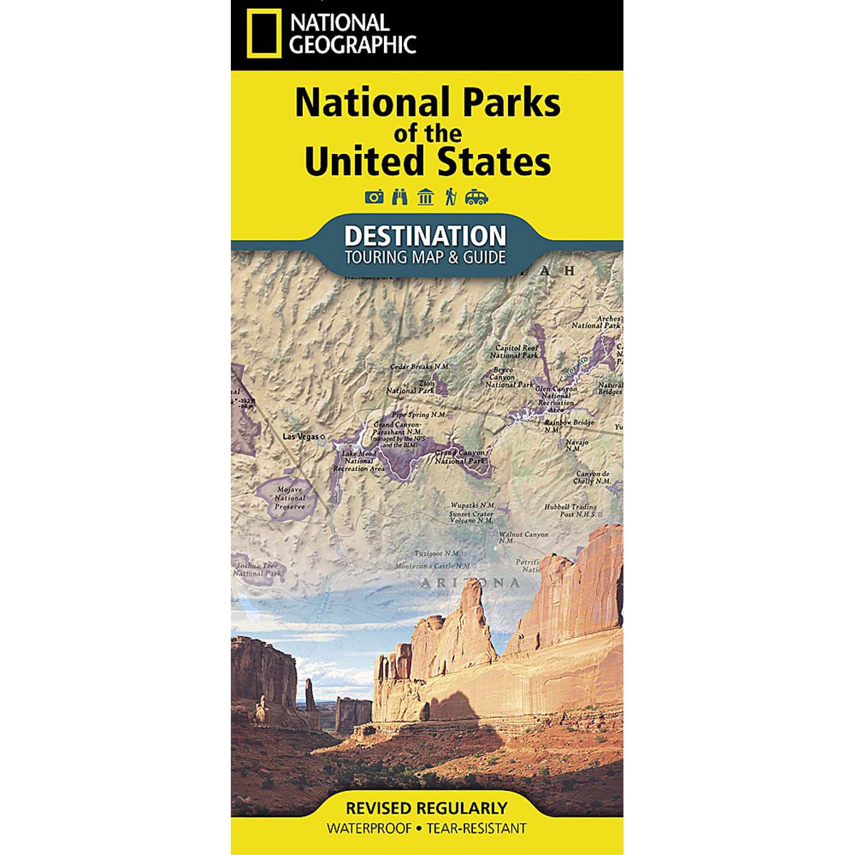 National Geographic's Destination Map of National Parks of the United States highlights the nearly 400 magnificent parks across America. The country is represented in subtle earth-tones with shaded mountain relief and intricately drawn river systems. Photos capture some of the diverse landscapes preserved and protected by the national park system. A list of all park service units, sorted by state, is also included to help you find the closest park, national monument, or national historic site.
