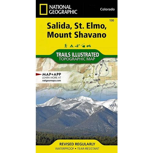 National Geographic's Trail Illustrated map of Salida, St. Elmo and Mount Shavano offers unparalleled detail for outdoor enthusiasts exploring this area in the heart of the San Isabel National Forest. Expertly researched and created in partnership with the U.S. Forest Service, the Bureau of Land Management and others, this map will guide you along the trails, up and down the peaks and across the rivers and lakes as you enjoy your adventure or recreation activity. The map features many points of interest, including North Fork Resevoir, Tabeguache Peak, Mount Princeton and the Collegiate Peaks Byway along with its many recreation areas.