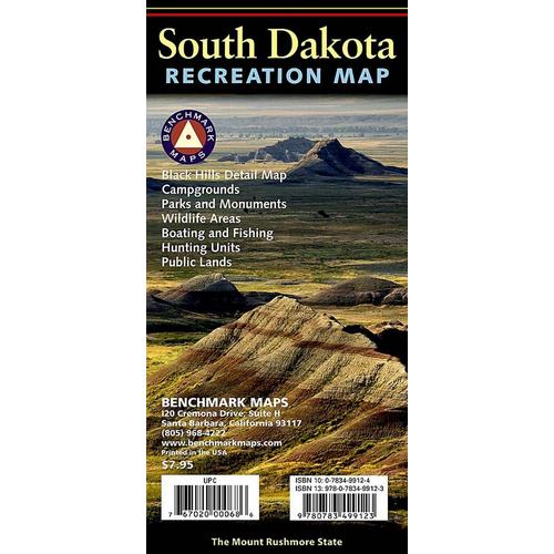 The South Dakota Recreation Map is the first map product to show the real richness of recreation potential in The Mount Rushmore State. One side provides a full state map that features Public & Tribal Lands, extensive highway detail, point-to-point mileages, recreation attractions, campgrounds, parks and wildlife areas, fishing access points, and hunting units (GMU). The reverse side features an area map of the Black Hills, and includes categorized recreation listings with helpful descriptions, current contact information, and map grid references.