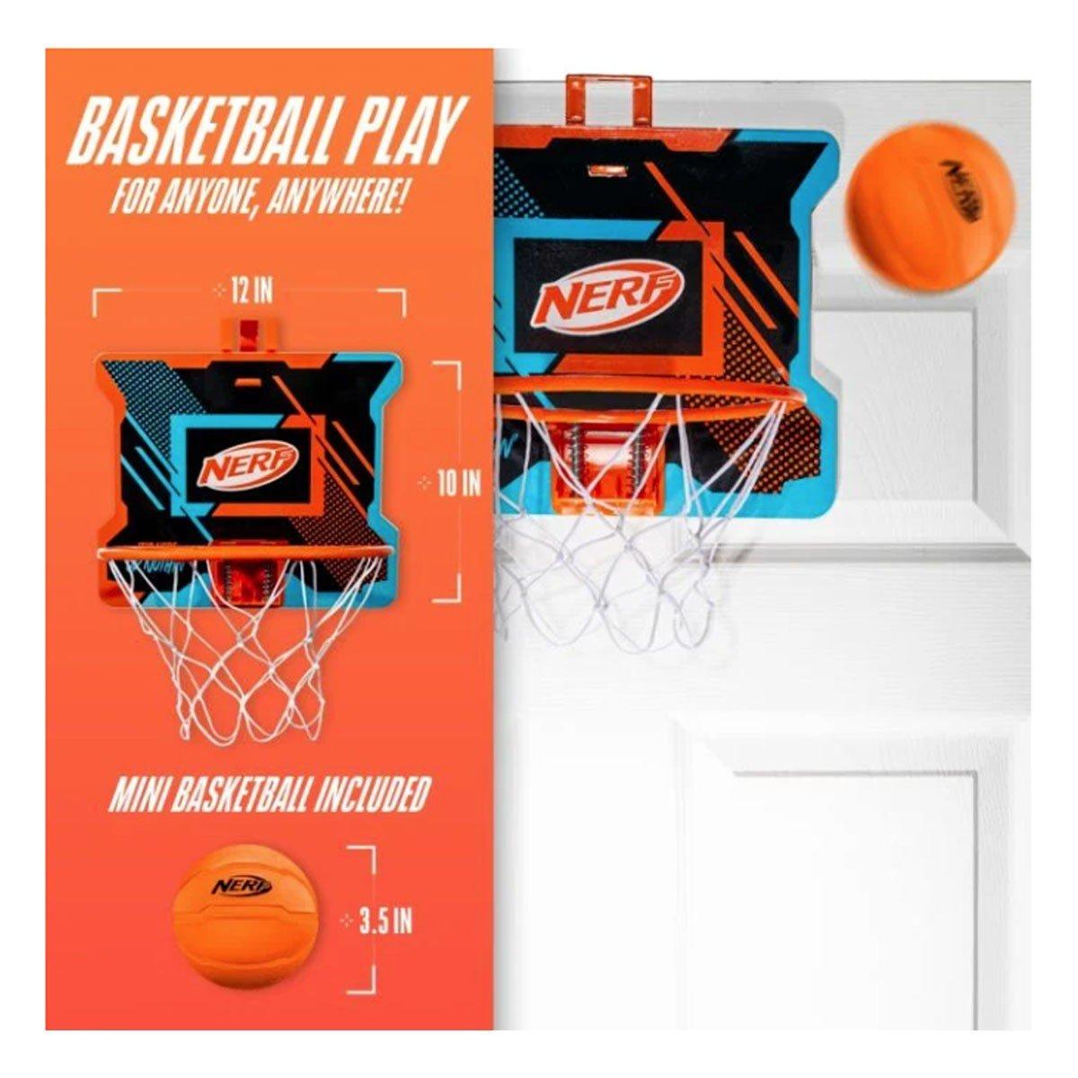 Bring all the fun of basketball indoors with the NERF Nerfoop Mini Over the Door Basketball Hoop Set! This all-in-one indoor mini basketball hoop set has everything kids need to get the game started right in their very own bedroom. This toy basketball set comes with (1) over the door kids basketball hoop and (1) mini NERF foam basketball so kids can play right out of the box. Simply hang the mini hoop over any standardized door and you're ready to play in seconds. This classic basketball toy has been a favorite of kids everywhere for over 50 years, and it is still going strong! Shoot from across the room and challenge your friends to 1 on 1 games for nonstop basketball action! Plus the soft foam 4" inch mini basketball is fun to use inside so kids can play worry free. So if your kid is looking to bringing some basketball excitement to their room, grab them the NERF Nerfoop Mini Over the Door Basketball Hoop Set and start the game today!