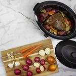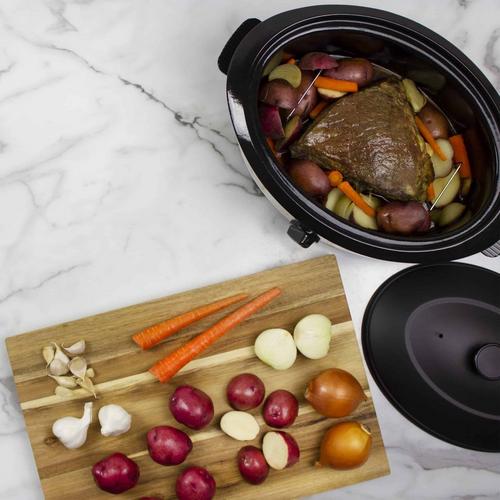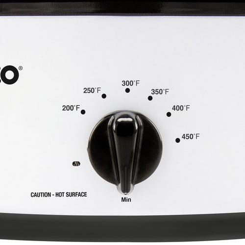 Serve up and celebrate with the NESCO 6 QT. Roaster! This versatile appliance is designed to roast, bake, cook, steam, slow cook and serve all in one. The 750 watt roaster base features “Circle of Heat” technology which provides moist and even cooking. The removable 6 quart cookwell serves up to 6 people, convenient for entertaining and small families. Whether you’re baking a ham, serving pulled pork, or slow roasting brisket, the full-range temperature control (200°F – 450°F) provides the versatility needed for a wide variety of cooking options. The durable porcelain enamel finish is easy to clean and ensures years of enjoyment. Includes a cooking rack with lift-out handles for baking and oil-free roasting. Set it to satisfy and bring that delicious flavor anywhere. The portable and convenient NESCO 6 QT. Roaster is perfect for those special occasions and on-the-go family activities.