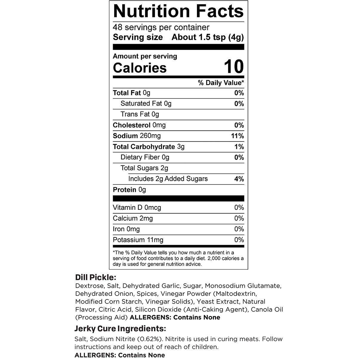 Dill pickle fanatics, your new favorite spice for your jerky is now here. The Dill Pickle Flavor seasoning makes up to 6 lbs of meat. Three packs of seasoning and three packs of cure are inlcuded to make fresh jerky from lean ground beef, pork, turkey or venison. It will become your new favorite snack.