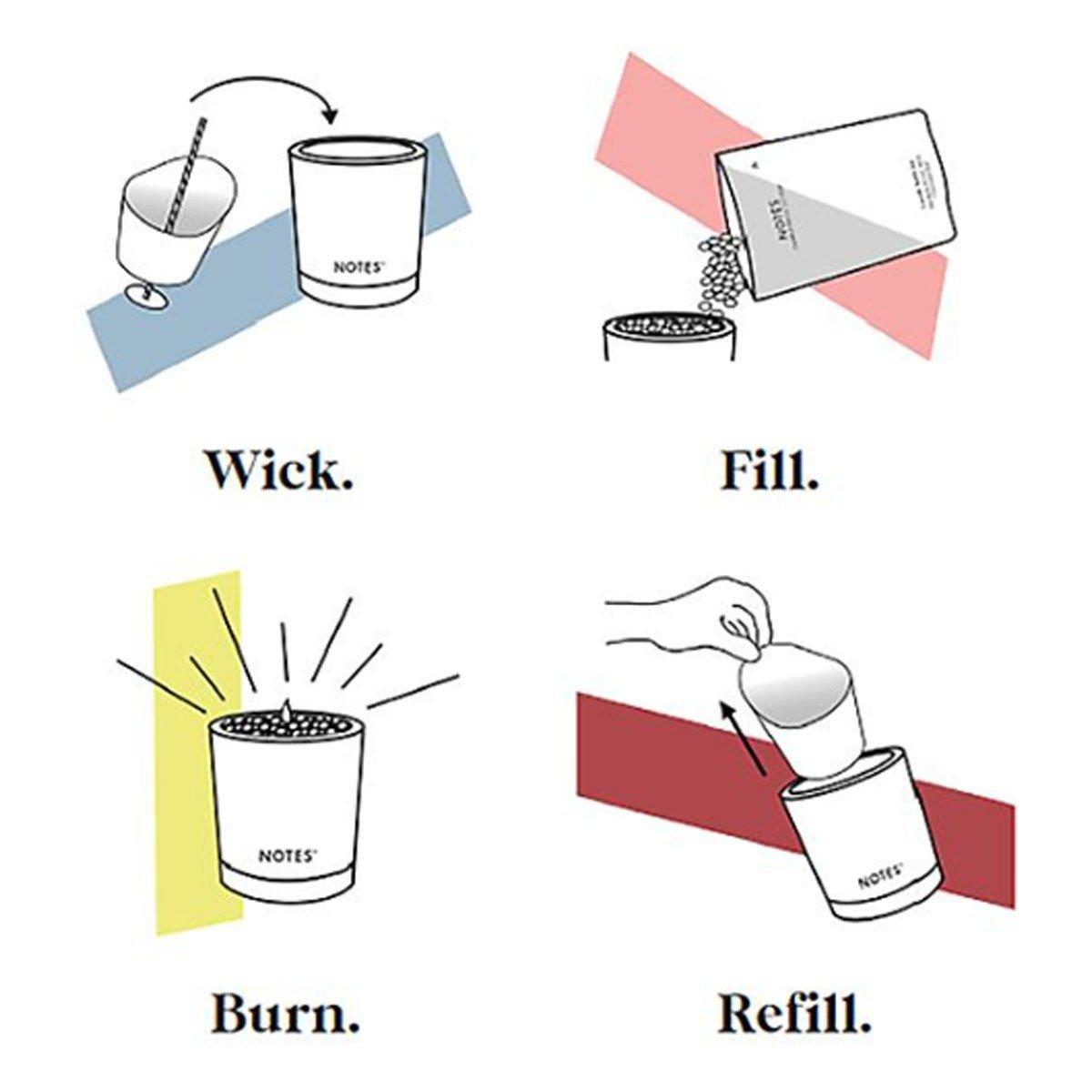 A perfect place to get started, this NOTES® Starter Candle is the only candle you will ever need. Millions of single use containers end up in landfills every year, so by making a small change in the way you burn candles, you'll make a big difference in the footprint we all leave behind.