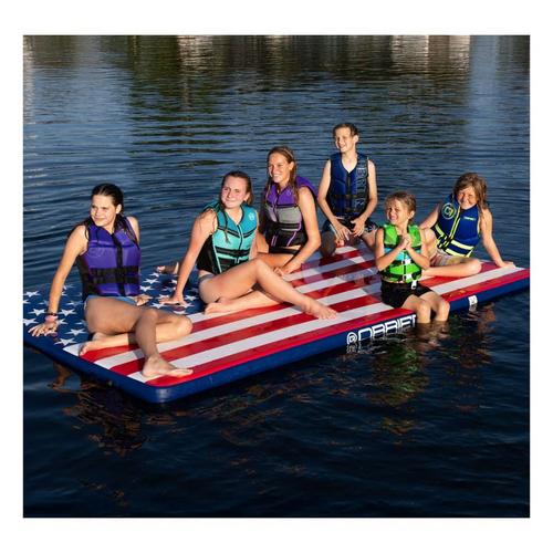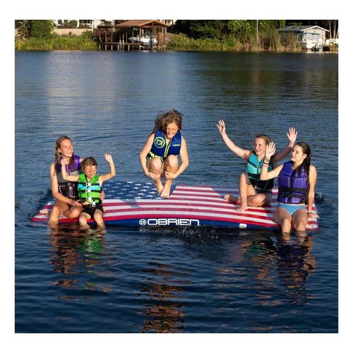 With its vibrant colors and American flag design, the O'Brien Runway Flag Edition is sure to be the centerpiece of any party. Whether you're hosting a beach gathering, or simply want to have some fun on the lake, this inflatable island will take your event to the next level. But the Runway Flag Edition isn't just for high-energy play. It also doubles as a comfortable lounge area for those moments when you need a break from all the excitement. Gather your friends, lay back, and let the gentle waves rock you as you sunbathe or chat away. With its spacious design, there's plenty of room for everyone to stretch out and enjoy the sun's warm rays.