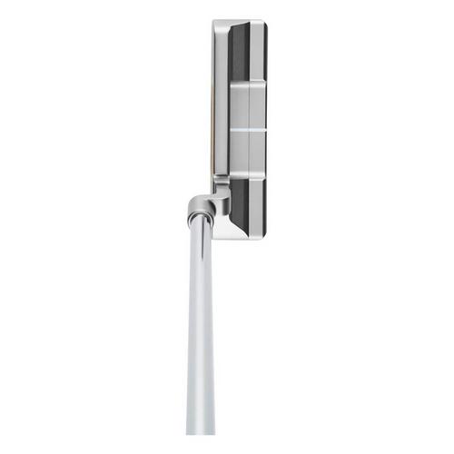 • Mallet putters have a larger head design with more perimeter weighting for a bigger sweet spot and added forgiveness. They are a good option for golfers with a straight-through putting stroke or beginners.