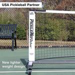 The net adheres to official Pickleball dimensions (22’ x 34”), and the center-strap design maintains consistent height along the net. Adjustment straps on net edges provide excellent net tension. Fast and easy to assemble. Made from heavy 420D nylon, our PickleNet Deluxe bag with wheels features a durable zipper, carry straps, and internal sections to make portable net storage easier than ever. Oval tubing for faster set up and automatic alignment of the center frame. The elastic bottom net band speeds up net set-up, helps maintain consistent net tension, and takes stress off of the net to increase durability.