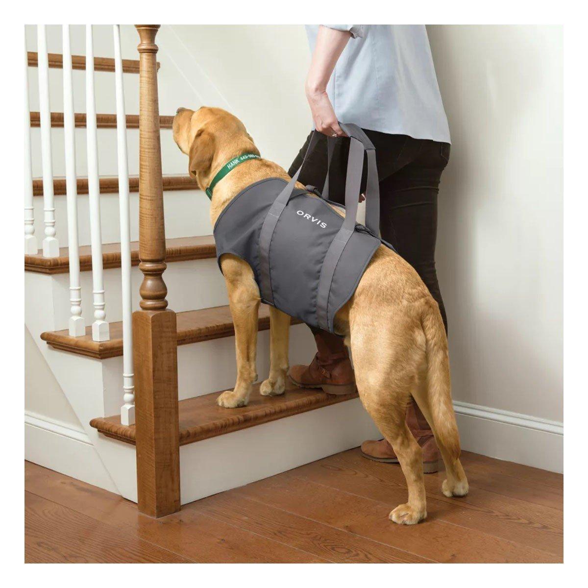 Comfortably support your dog's entire body while you assist them into a standing position, up and down stairs, and in and out of the house with our incredibly easy-to-use sling lift. Ideal for dogs suffering from hip problems or muscle pain, older dogs, and dogs recovering from surgery. A securing clip across the back stabilizes the lift in place, whilst padded handles increase your comfort.