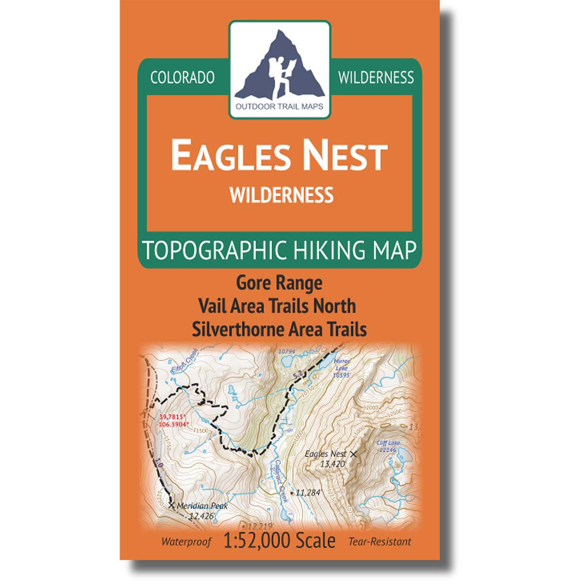 The Eagles Nest Wilderness Topographic Hiking Map shows all hiking trails in the Eagles Nest Wilderness and Gore Range of central Colorado and surroundings, with these features: