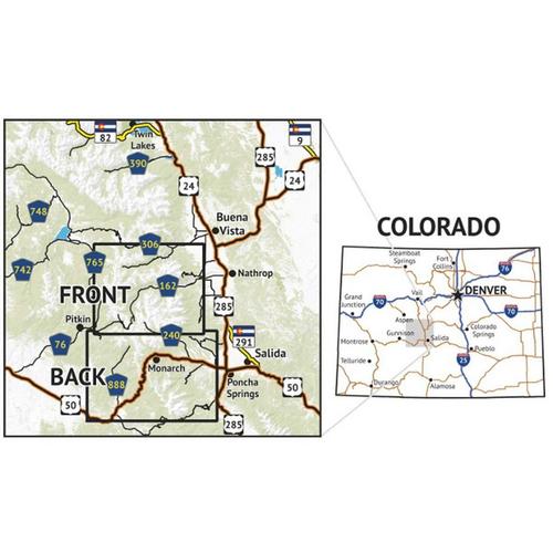 This map covers the hiking areas in the Sawatch Range south of the Collegiate Peaks Wilderness to just south of the Monarch Pass, including St. Elmo, Mount Princeton area, the Indian Group 14ers (Antero, Shavano, Tabeguache) and more.