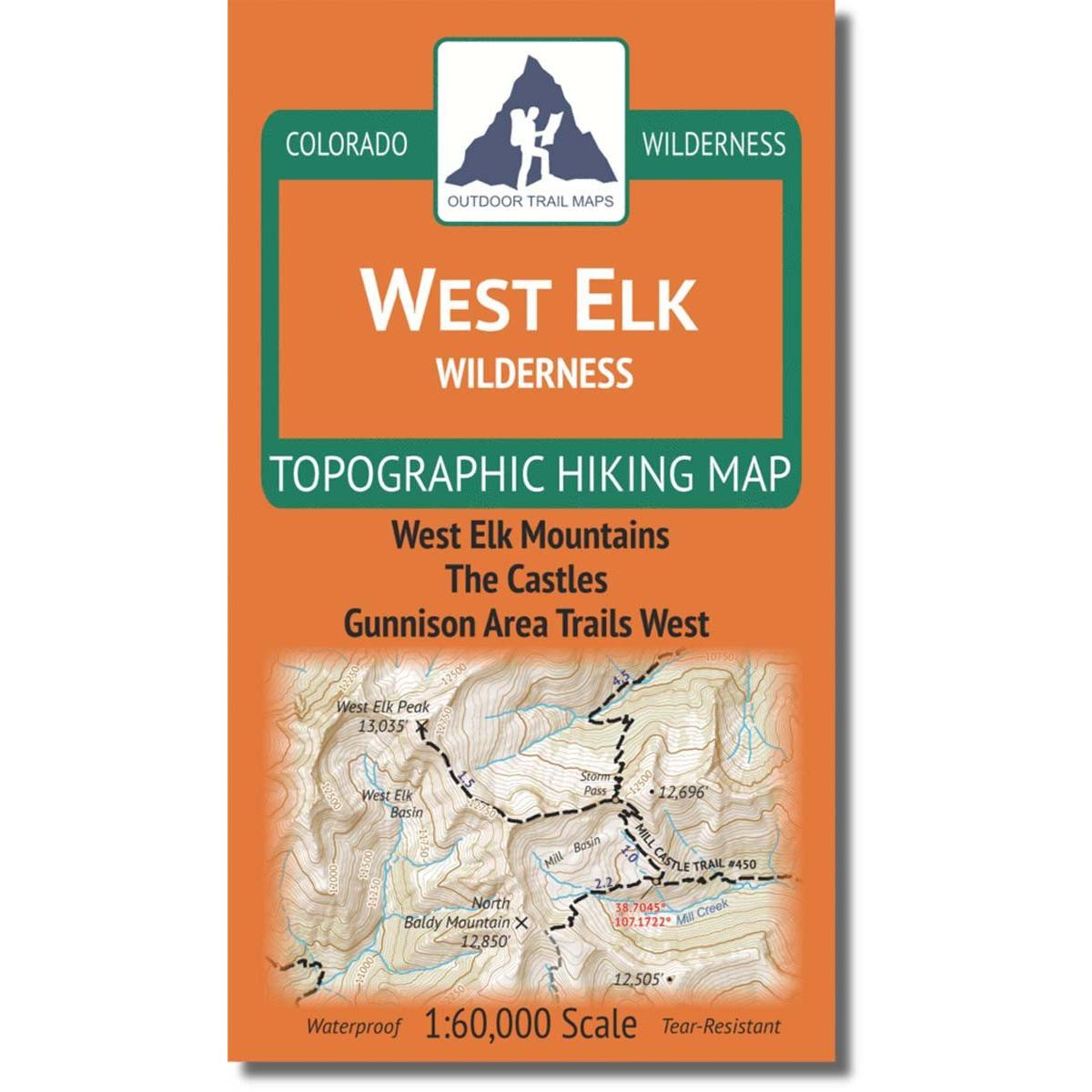 The West Elk Wilderness Topographic Hiking Map shows all of the hiking trails in the West Elk Wilderness in of central Colorado, with these features: