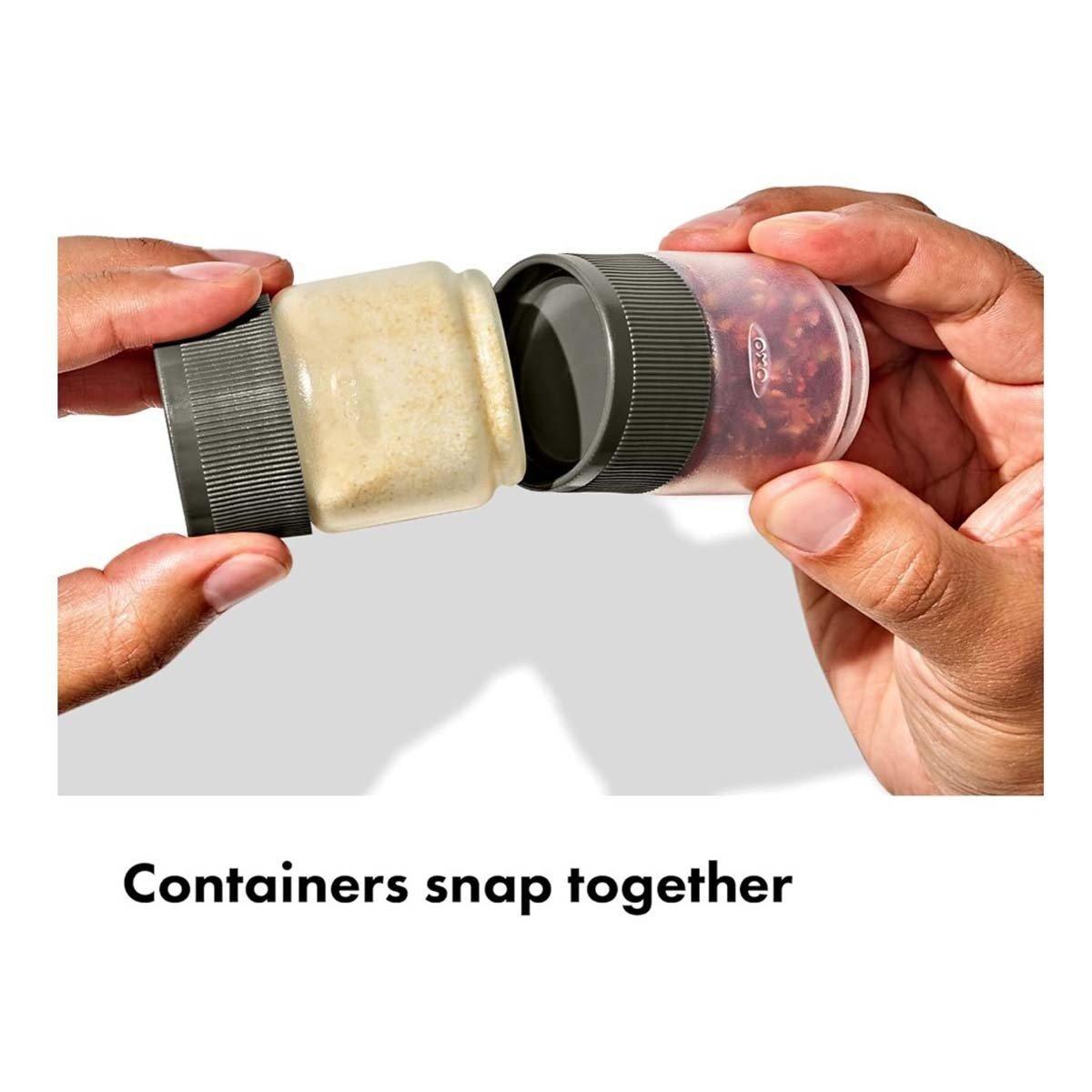 Tired of digging through your bins for your essential camp cooking tools? With the OXO Outdoor Camp Kitchen Prep Set, you can access your camp kitchen essentials in one efficient watertight gear case. This prep set comes with a watertight gear case, flexible cutting board, 5.5 in Santoku knife with sheath, two 3 oz leakproof squeeze bottles and two spice shakers. But wait, there’s room for more! There’s extra room in this case for other essentials like bottle openers, thermometers or measuring spoons. This gear case has an IP66 waterproof rating – which means it’s resistant to splashes and sprays. The flexible cutting board fits in the lid of gear case, so it’s always right where you need it when you’re ready to prep your food. The 5.5 inch Santoku knife comes with a sheath that locks, so you can securely store it in between uses. The interchangeable spice shakers are very handy for bringing essential spices. They feature two shaker inserts – one with small holes for garlic powder, salt and cumin and one with large holes for red pepper flakes, oregano or dried onion. The leakproof squeeze bottles have interchangeable leakproof lids to safely transport and store bottles with condiments to and from home and the campsite. Set includes: Watertight gear case, flexible cutting board, 5.5 in Santoku knife with sheath, two 3 oz leakproof squeeze bottles, two spice shakers. OXO Outdoor - better tools to make better food in the outdoors