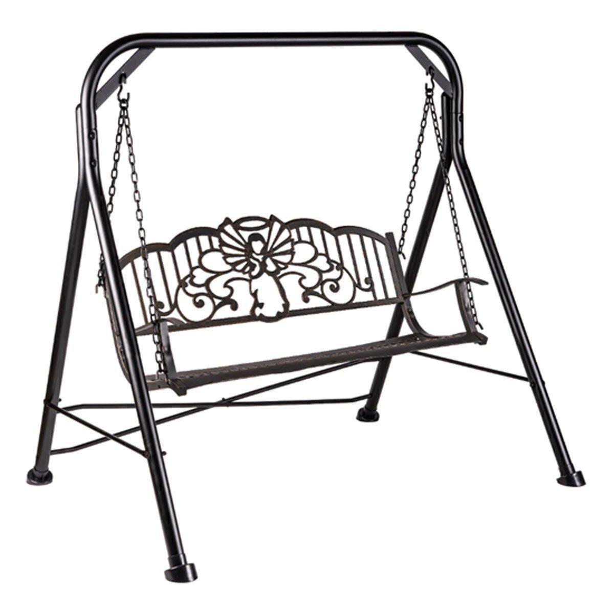 The perfect memorial gift, our angel swing features an artist-designed cast iron back with a haloed angel. The swing frame is tube steel, and the iron back and seat are hung with powder coated steel chains.