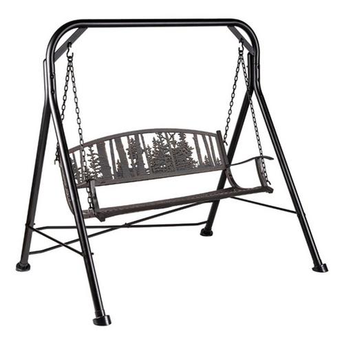 This newly designed Aspen and Evergreens Cast Iron Swing features a beautiful forest scene of iconic tree silouhettes. Our swings are made from a combination of a tube steel frame and a cast iron back and seat, hung with powder coated steel chains.