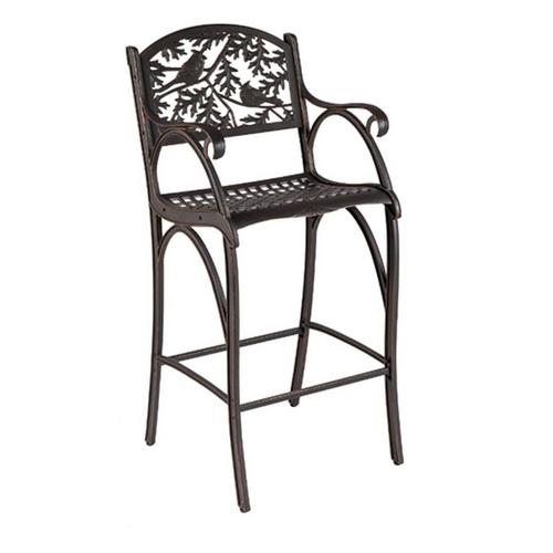 Our pub furniture provides a stunning two-person seating arrangement that looks great indoors or outdoors! The Cardinal Pub Chair design includes two of the beloved songbirds amidst an oak leaf background. The pub chairs are made of premium cast aluminum, featuring a bronze powder coat with hand painted gold highlights. Looks great with the Wildflower or Leaves pub table. Chairs and tables sold separately.