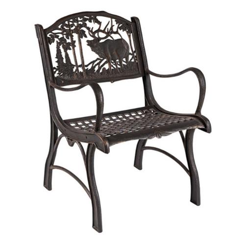 {"reviews":[],"offset":0,"limit":10,"total":0,"gtin":"872715003597"}"Full Description:\nThe Elk Chair features a bull amidst a mountain setting. The baked on bronze powder-coat finish and hand-painted gold highlights make the chairs both attractive and maintenance free.\n\nFeatures:\n\u003cul>\n\u003cli>*Rust Inhibitor\u003c/li>\n\u003cli>*Bronze Powdercoat\u003c/li>\n\u003cli>*Maintenance Free\u003c/li>\n\u003cli>*Only 4 parts for easy assembly\u003c/li>\n\u003c/ul>\n\nSpecifications:\n\u003cul>\n\u003cli>Seat capacity: 300 lbs.\u003c/li>\n\u003cli>Product weight 62 lbs.\u003c/li>\n\u003cli>31 1/2" wide, 36" tall, and 24 1/2" deep. Seat height 16".\u003c/li>\n\u003c/ul>\n"