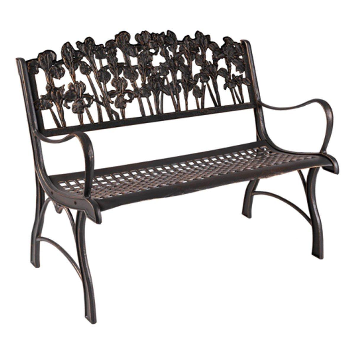 Our Cast Iron Iris Loveseat is a smaller version of the Iris Bench. Featuring realistic, artist-designed irises forming the seat back, the loveseat adds floral beauty feel to any outdoor space. Like our full size benches, it includes a bronze powder coat finish with hand painted gold highlights.