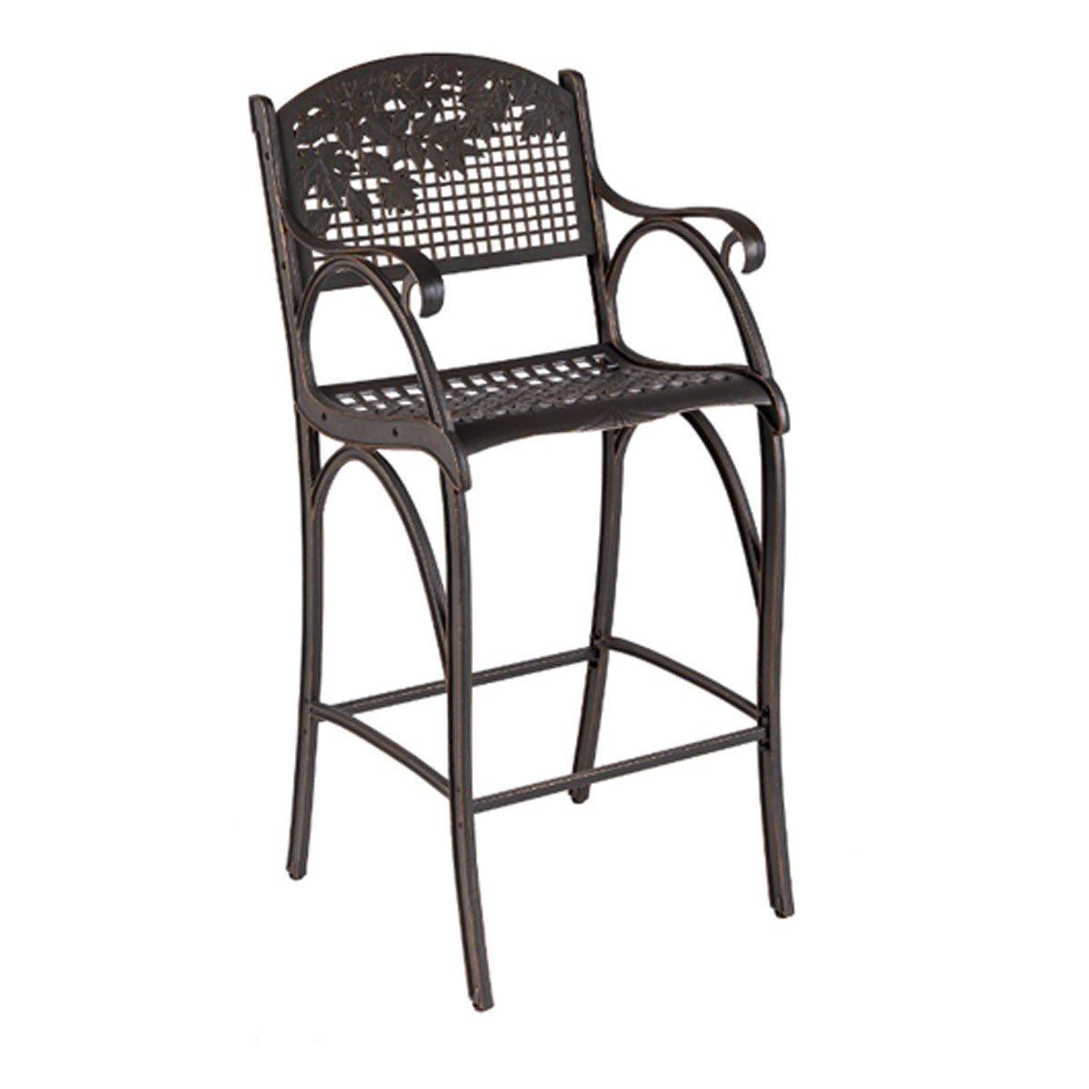Add a new seating element to your indoor or outdoor space with our pub furniture. The Leaves Pub Chairs with matching Leaves Pub Table provide a stunning two-person seating arrangement. The artist-designed leaf pattern if set against a clean-lined grid. The pub chairs are made of premium cast aluminum, featuring a bronze powder coat with hand painted gold highlights. Chairs and tables sold separately.