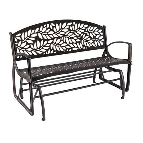 If you are looking for modern, nature-inspired outdoor furniture, look no further! The Modern Flora Glider Bench features a simple, artist-designed leaf design, and the glider is smooth, quiet and comfortable. The glider is finished with a bronze powder coat and hand-painted gold highlights.
