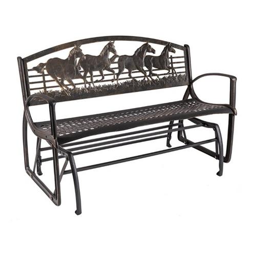 Painted Sky Designs Running Horses Patio Glider Bench