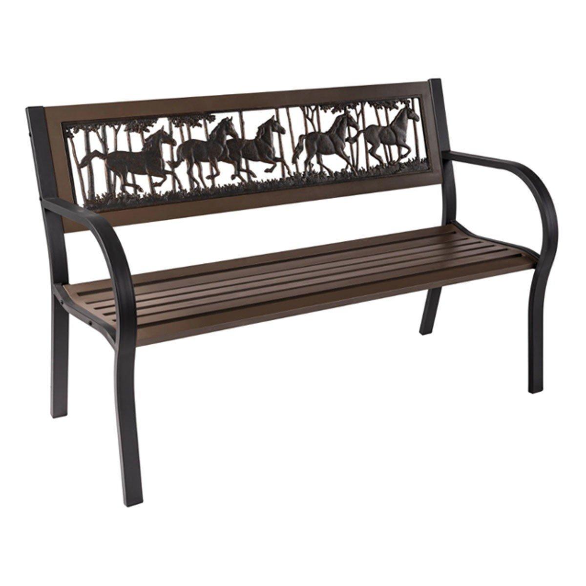 Painted Sky Designs Running Horses Tube Steel Garden Bench