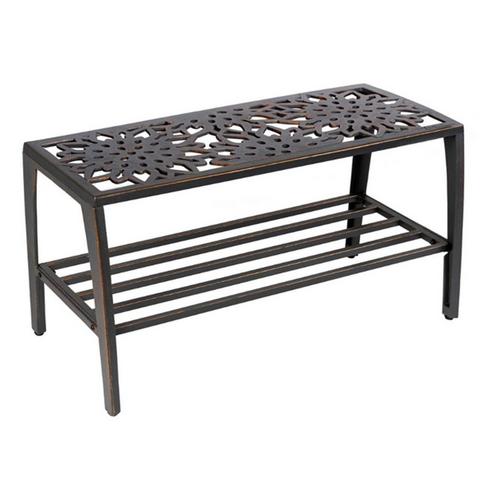 Our newest backless bench brings together our modern sunflower design with the versatility of the backless bench. Outdoors, it works equally well as a bench or coffee table. Bring it indoors and you have a great entryway bench. Adjustable rubber feet protect floor surfaces. Cast iron with tube steel lower shelf.
