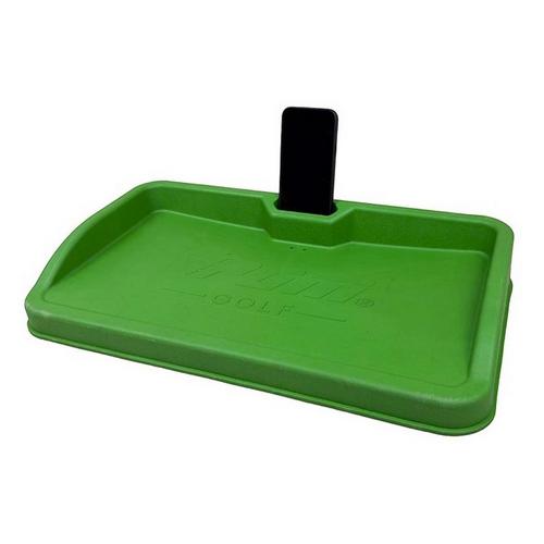 Our golf ball tray can hold over 100 golf balls, keeping them within reach for your next shot. These trays are crafted to the highest specifications as a great addition to your golf mat. To enhance stability, the trays feature a cleverly designed lip that easily slides under the golf mat, preventing any unwanted shifting during your practice sessions. Additionally, we've thoughtfully incorporated a drain hole into the tray, allowing efficient water drainage to keep your golf balls in optimal condition. We've included a phone holder for recording your training sessions or sharing your practice live online!