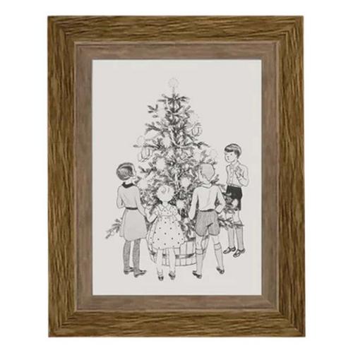 The Petal Lane Children Around The Tree Print is a festive wall art piece capturing the joy of children gathered around a Christmas tree, bringing warmth and holiday charm to any seasonal décor.