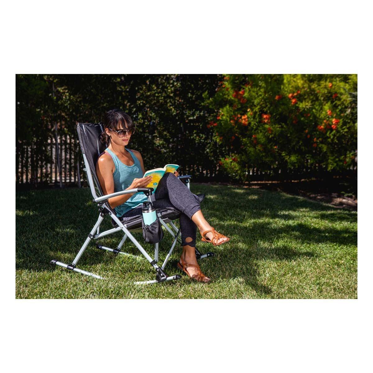 {"reviews":[],"offset":0,"limit":10,"total":0,"gtin":"999674773528"}"Full Description:\nWhat does portable relaxation look like to you? What does it sound like? If you said foldable rocking chair, congratulations! You're both correct and a psychic!\n\nFeatures:\n\u003cul>\n\u003cli>Smooth rocking feature\u003c/li>\n\u003cli>Mesh slits on backrest allow for ventilation\u003c/li>\n\u003cli>Foldable, for easy storage and transportation\u003c/li>\n\u003cli>Includes carrying bag\u003c/li>\n\u003cli>Made of 600D PVC and a steel frame\u003c/li>\n\u003c/ul>\n\nSpecifications:\n\u003cul>\n\u003cli>1 Outdoor Rocking Chair (28" x 35" x 41"), 1 Drawstring Carrying Bag with Shoulder Strap (4.5"x 11" x 51") Care Instructions: Surface wash with a damp cloth only.\u003c/li>\n\u003cli>250 lbs. weight capacity\u003c/li>\n\u003cli>BUILT TO LAST Lifetime Guarantee\u003c/li>\n\u003c/ul>\n"