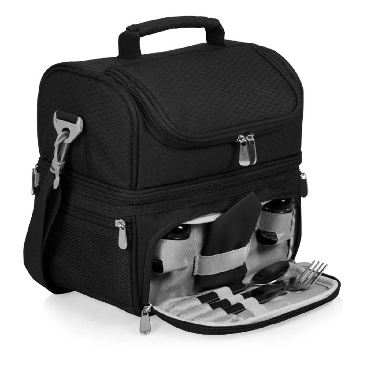 {"reviews":[],"offset":0,"limit":10,"total":0,"gtin":"999677350016"}"Full Description:\nThe Pranzo Lunch Bag Cooler with Utensils is a high quality insulated lunch cooler for discerning men and women - after all, no matter your job, you gotta have a lunch box!\n\nFeatures:\n\u003cul>\n\u003cli>Insulated picnic/lunch cooler with service for one\u003c/li>\n\u003cli>Separate sections (top and bottom) allow you to isolate your foods by temperature requirements\u003c/li>\n\u003cli>Holds 8 12-oz. cans\u003c/li>\n\u003cli>A zippered mesh pocket on each side provide extra storage\u003c/li>\n\u003c/ul>\n\nSpecifications:\n\u003cul>\n\u003cli>1 Picnic Tote (11" L x 7.5" W x 12" H), 1 18/0 Stainless Steel Fork (18" L), 1 18/0 Stainless Steel Knife (18.5" L), 1 18/0 Stainless Steel Spoon (18.5" L), 1 Salt Shaker (1" D x 2" H), 1 Pepper Shaker (1" D x 2" H), 1 Napkin (100% Cotton, 14" X 14") Care Instructions: Surface wash with a damp cloth.\u003c/li>\n\u003cli>BUILT TO LAST Lifetime Guarantee\u003c/li>\n\u003c/ul>\n"