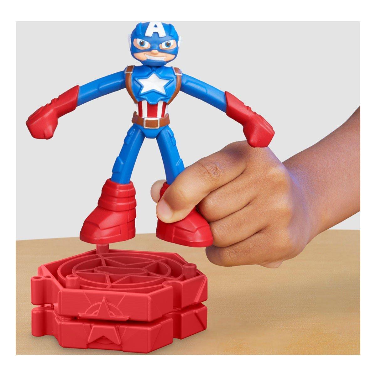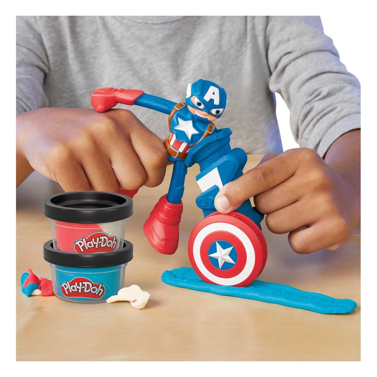 Power up kids’ imaginations with the Play-Doh Marvel Captain America Stamping Shield playset! The 4-inch (10.16 cm) bendy action figure and Play-Doh accessories let kids play out epic stories. Imagine battling a Play-Doh Ultron, flying over the city with a Play-Doh jetpack, and capturing baddies as you roll the Stamping Shield tool. Use the Play-Doh colors to customize the Captain America action figures chest logo or imagine other upgrades to his suit. These Play-Doh Captain America toys for boys and girls come with 2 ounces (57 g) of classic Play-Doh modeling compound. This Play-Doh kit is great for kids gifts for fans of super hero figures, arts and crafts activities, and sensory play. PLAY-DOH and HASBRO and all related trademarks and logos are trademarks of Hasbro, Inc. Copyright MARVEL. All trademarks and registered trademarks are the property of their respective owners.