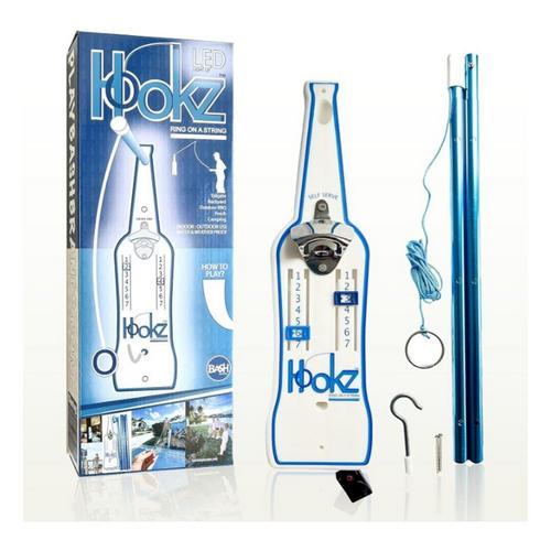 Bash Brands HookZ LED ring on a string game is fun indoor or outdoor challenge game for all ages to enjoy. Simply aim the ring at the hook, let it swing and try to get the ring on the hook to score a point. Play day or night with the only LED hook and ring game available. HookZ is built for indoor and true outdoor fun. HookZ uses high quality stainless steel for the bottle opener, hook, ring and screws. The telescoping pole is made of aluminum. Board is made of durable plastic that will never rot. The LED module is fully waterproof.