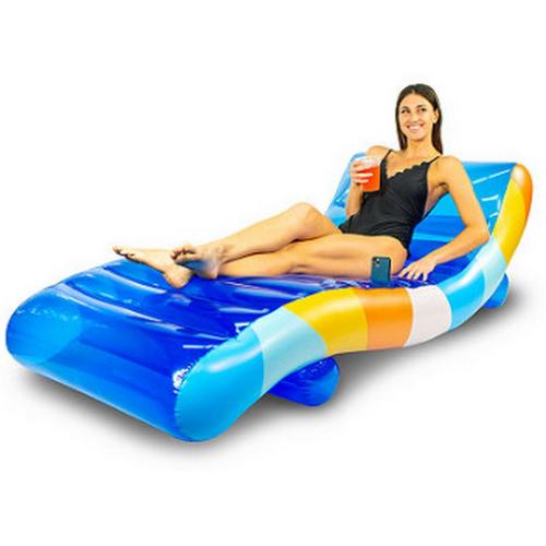 Relax in water or poolside with this inflatable Pool Candy floating chaise lounger. It features a comfy chaise design, built-in drink space, and durable clear PVC construction for stylish, leisurely lounging days.