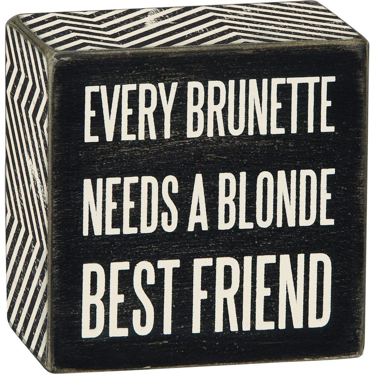 {"reviews":[{"id":2796096,"locale":"en_US","rating":1,"title":"Tiny","text":"Super tiny!","textLength":11,"csFlag":false,"inappropriateFlag":false,"reviewedFlag":true,"autoModerated":true,"published":true,"incentivized":false,"upVotes":0,"downVotes":1,"orderId":"234896832","dimensions":[],"responses":[],"tags":[],"media":{"photo":[],"video":[],"audio":[]},"user":{"nickName":null,"firstName":"Miranda","lastName":"Cross","emailAddress":"[email protected]","externalId":null,"city":null,"state":null,"country":null,"ageRange":null,"badge":null,"shopperProfiles":[]},"reviewedDate":"2023-04-26T14:39:14-04:00","purchaseDate":"2023-03-22T00:00:00-04:00","dateCreated":"2023-04-26T07:03:01-04:00","customData":[],"incentiveType":null,"campaign":null,"deviceFingerprint":null,"topics":[],"catalogItems":[{"sku":"883504-23561","title":"Primitives by Kathy Every Brunette Needs Box Sign","url":"https://www.scheels.com/p/883504-23561","category":"signs-and-letterboards","reviewCount":1,"ratingCount":1,"averageRating":1,"ratingBreakdown":{"1":1,"2":0,"3":0,"4":0,"5":0},"active":true,"attributes":[]}]}],"offset":0,"limit":10,"total":1}"Full Description:\nEVERY BRUNETTE NEEDS A BLONDE BEST FRIEND<br/><span style='font-weight:bold;'>\n\nFeatures:\n\u003cul>\n\u003cli>Wood\u003c/li>\n\u003cli>ARTIST: Primitives by Kathy\u003c/li>\n\u003cli>SIZE: 3" Square\u003c/li>\n\u003c/ul>\n\n"
