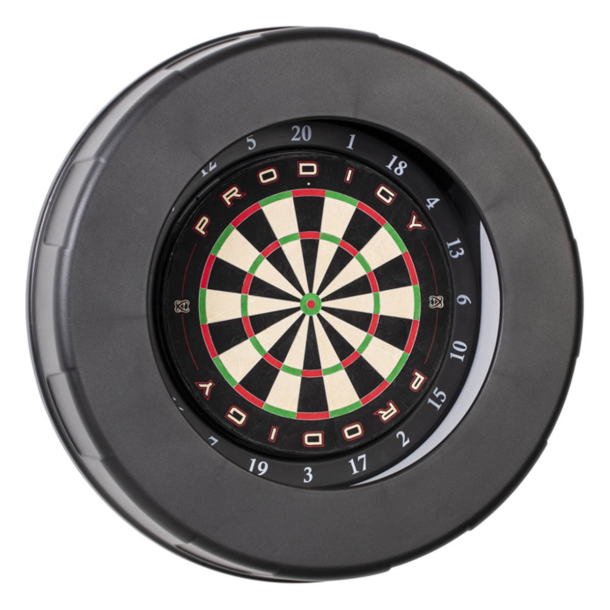 The Prodigy Automatic Bristle Dartboard System has been dubbed the smartest dartboard ever - and for good reason. The smart dartboard features patent pending bi-ocular dart recognition technology combined with custom, state-of-the-art location algorithms, making it the most accurate smart dartboard on the planet. Its dedicated app software transforms your mobile device into a full-featured scoring platform that saves player profiles, game history, statistics and more while the 360 degree LED lighting system provides tournament lighting conditions by eliminating all shadows. The HDMI and stereo outputs allow you to instantly connect with any size TV and sound system, providing an in-home stadium experience while the tournament specifications and razor thin, staple-free spider provides authentic steel-tip play.