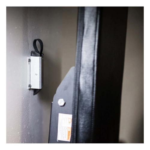 The Profile Bench Wall Lock is easy to install and use, and it doesn't have stud requirements. When storing the bench, the lock automatically snaps onto the back plate of the bench. To unlock, simply pull up on the tether and deploy the bench.