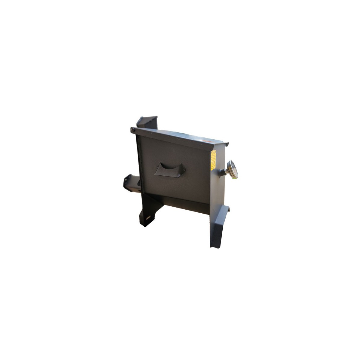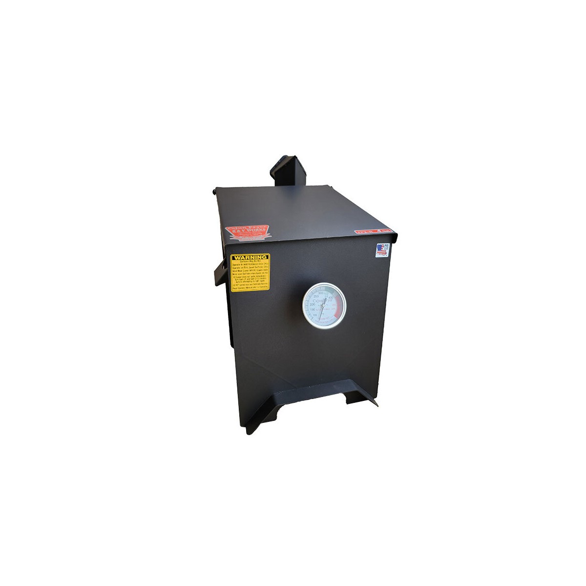The R&V Works Deep Fryer is a portable and easy-to-use fryer that's ideal for a fish fry, tailgating, or barbeques. With two frying baskets and a capacity of four-gallons, this deep fryer can feed between 25-30 people each hour. The special design of the burner is placed six inches above the bottom of the oil reserve at a 45-degree angle to prevent food from collecting on the heating element and falling to the bottom of the deep fryer. This deep fryer safely heats the oil for cooking, while the thermometer displays the oil's temperature. For easier cleaning, this deep fryer features a drain valve near the bottom. For a delicious meal, try the R&V Works Deep Fryer today!
