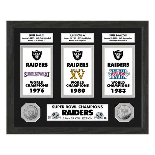 Proudly display your Oakland Raiders spirit with the Raiders Super Bowl Banner Collection Photo Mint. Whether you’re a collector of all things Oakland Raiders or want to display your pride, this piece of Oakland Raiders memorabilia will help you do just that. From the home to the office, this NFL collectible will help you show off your team pride. With the Raiders Super Bowl Banner Collection Photo Mint, no one will doubt your favorite NFL team.