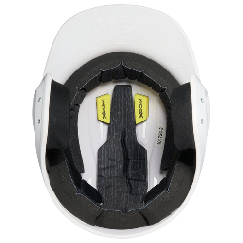 The Rawlings MACH-X® Max Performance Batting Helmet delivers the elite protection and comfort today’s hitters need to face top-level pitching. Engineered for pitch speeds up to 90 mph, this helmet exceeds the NOCSAE standard with a premium 2-piece shell system — combining an inner ABS core with a polycarbonate plate for reinforced strength in impact zones.
