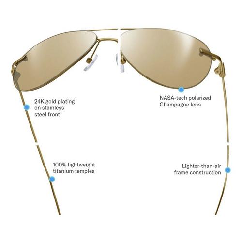 The elegant aviator-style frame is meticulously crafted with 24k gold plated titanium. Each pair comes in collector's edition packaging, and every Air LTD Gold is individually serial numbered, with only 500 pieces available worldwide. One of the defining features of the Air LTD Gold is its exceptional lightweight construction. Made with cutting-edge materials, these sunglasses offer a featherlight feel, ensuring ultimate comfort.