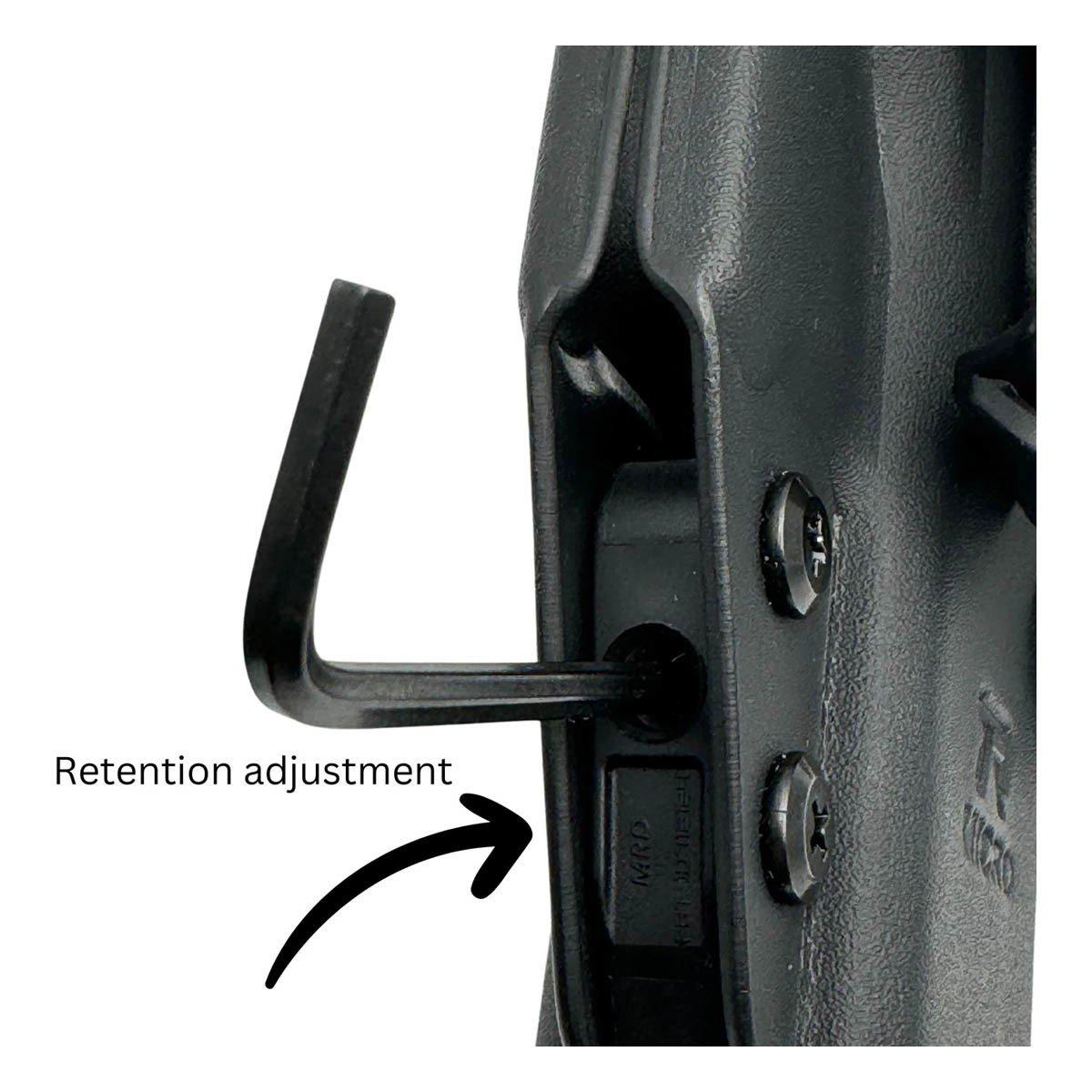Positive Retention: Say goodbye to thumb-breaks and complicated retention mechanisms. The adjustable retention device and Kydex material provides excellent retention without compromising ease of draw. Your firearm stays snugly in place, ready for action.