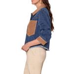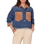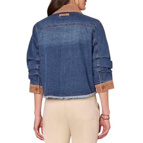 Women's Democracy Ruched Sleeve Button Front Mixed Media Cropped Denim Jacket
