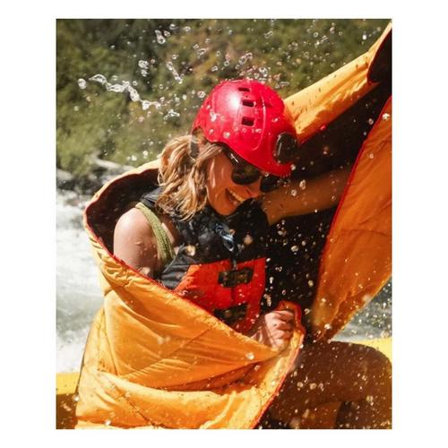 As we recline back in our camp chair, coffee in hand, staring up at the giant redwoods around us, the Rumpl Original Puffy 1-Person Blanket shields us from the crisp morning air. Packed with a lofty synthetic fill, treated with a water-shedding finish, and crafted from 100% recycled fibers, this blanket keeps us cozy dry and our environmental impact light.